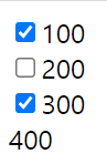 <input type = "checkbox" id = "cb3" name = "price" onclick = "calcPrice()"><span id = "price3">300</span><br>