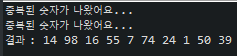 System.out.println("중복된 숫자가 나왔어요..."); // 체크용으로 일단 집어넣는다.