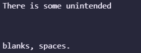 결과는 위의 캡처와 같은데, 앞 뒤의 공백이나 빈 줄만 삭제되고 문자열 가운데 있는 것은 삭제되지 않는다는 것을 알 수 있다.